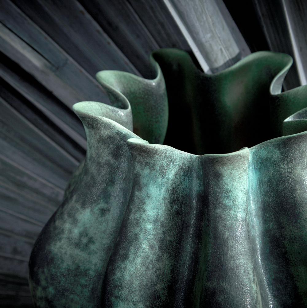 A mestria dos artesãos que recriam as sensações cromáticas únicas dos cenotes para a porcelana, através do vidrado reativo.
