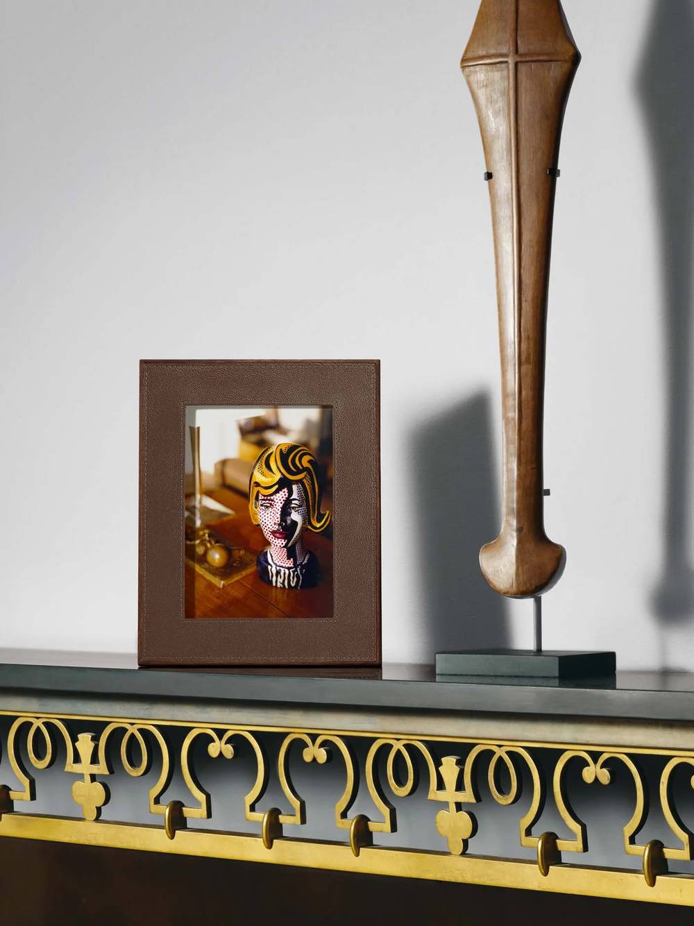 Fabricada em madeira de nogueira rica e couro granulado, com interior em camurça e fecho magnético, cada detalhe foi cuidadosamente concebido para proteger e preservar as suas fotografias mais preciosas. Suavemente inclinada para uma visualização ideal, esta moldura foi concebida para ser admirada e transmitida, elevando tanto a memória que guarda como o espaço que ocupa.