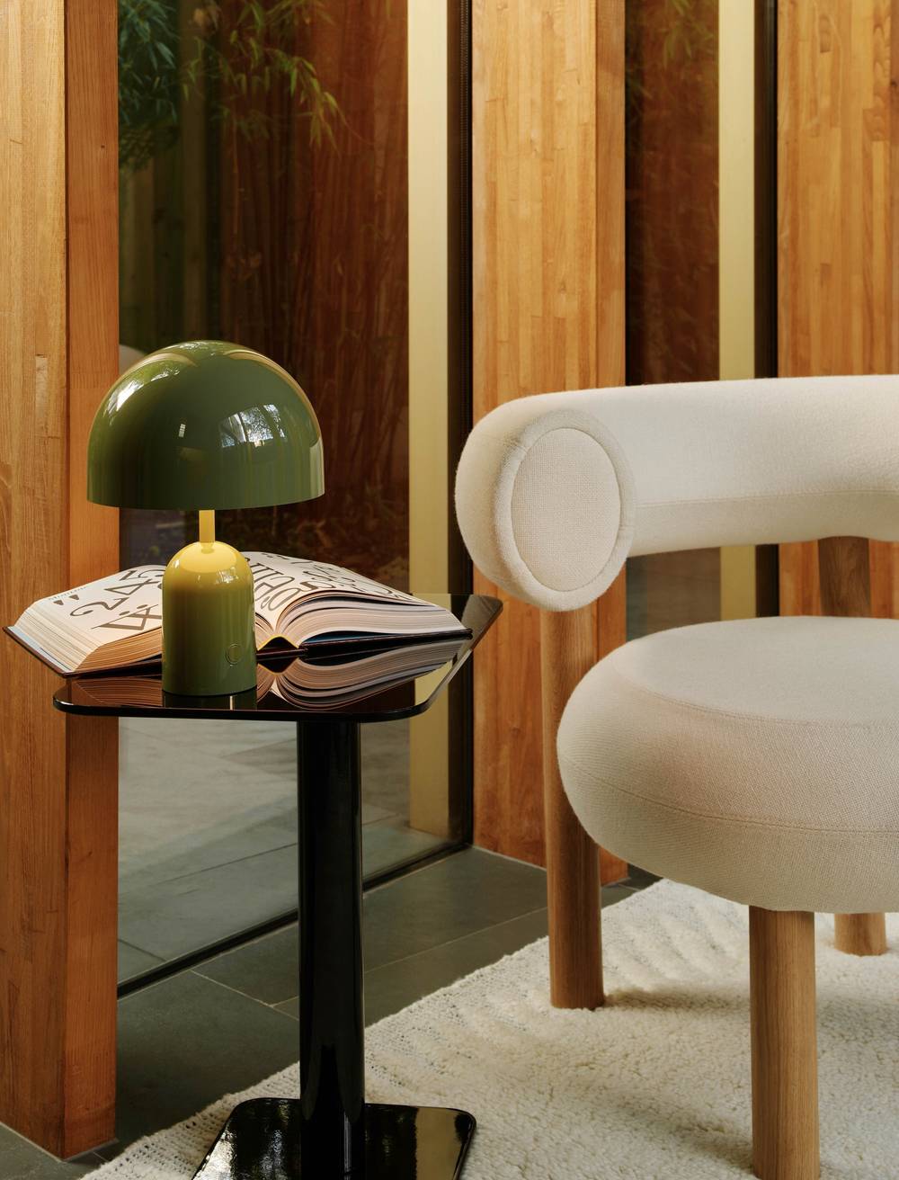 Candeeiro portátil e recarregável. Base e quebra-luz em aço prensado galvanizado. Autonomia de 7-9 horas, cabo de carregamento USB-A to Magnetic incluído, 200 cm de comprimento. Design de Tom Dixon. Fonte de luz LED de 3W incluída. Classe energética A a A ++.
