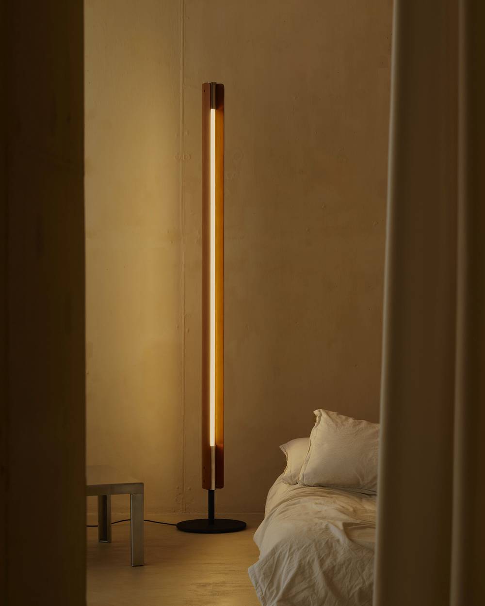 Designed by Tobia Scarpa in 1963 and reissued in 2025, Seki-Han is testament to his mastery of design and wood-working expertise. The intricate construction draws on naval techniques to shape two wooden blades that now rotate around the light source. Even when almost completely closed, a sliver of light remains visible, creating a highly poetic effect.