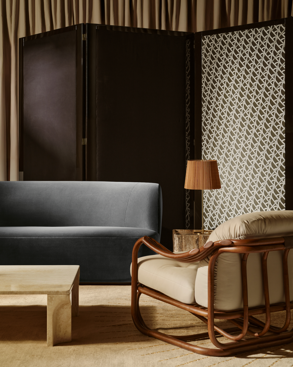 Constructed almost solely from steam-bent rattan canes, curved and fixed into place by hand, it features a distinctive set of gracefully contoured armrests, creating a visually striking yet supremely comfortable seat. Enhanced by two deep-set cushions, the Poltrona Tria delivers an exceptional lounging experience in any indoor setting – while the natural material expressions bring a welcome touch of the outdoors into the home.