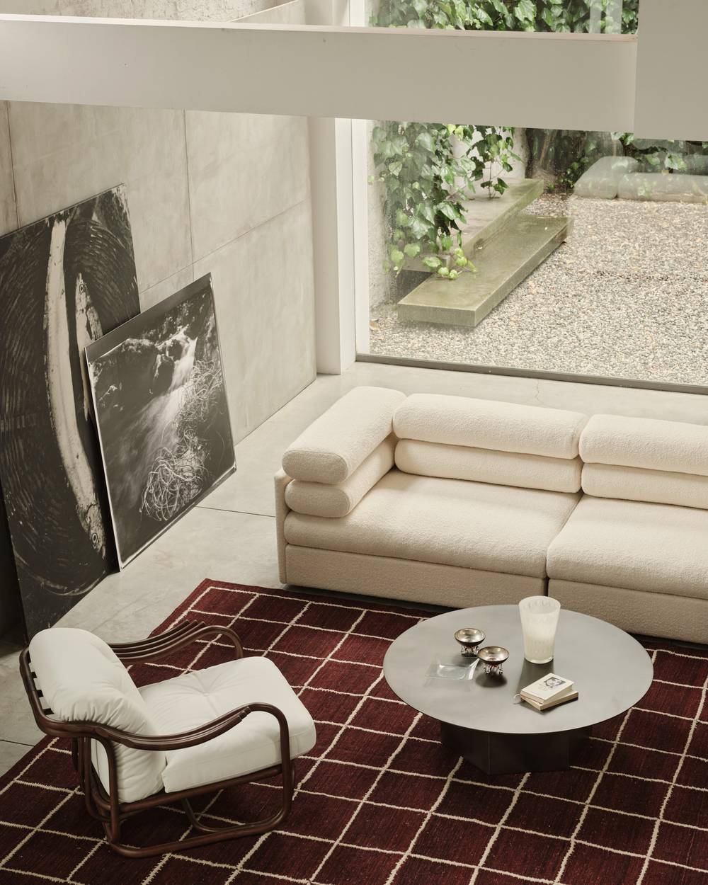 Revisited by Tobia Scarpa with GUBI five decades later, this edition has been subtly upgraded to enhance comfort and finesse the geometry of the design. Its interchangeable cushions can be reoriented to suit different needs and upholstery options, including GUBI’s new Reales and Fustagno fabrics, enhance the sofa’s tactile and visual character.