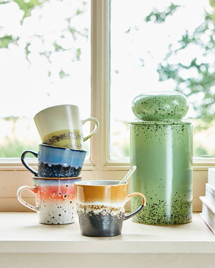 The Americano mugs have a 270 ml capacity, so you're always right. Thanks to the earthy elements and natural colours, this is the most relaxed range in the retro 70s ceramic collection. The exciting colour compositions and textured, hand-finished surfaces make each piece unique.