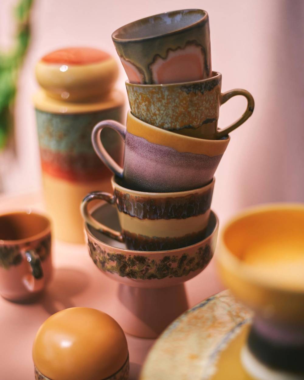 The new 70s ceramics collection takes cues from decades of art—think pop art, surrealism, expressionism and abstract forms. Each piece combines bold finishes and textured glazes for a look that feels both curated and creative.