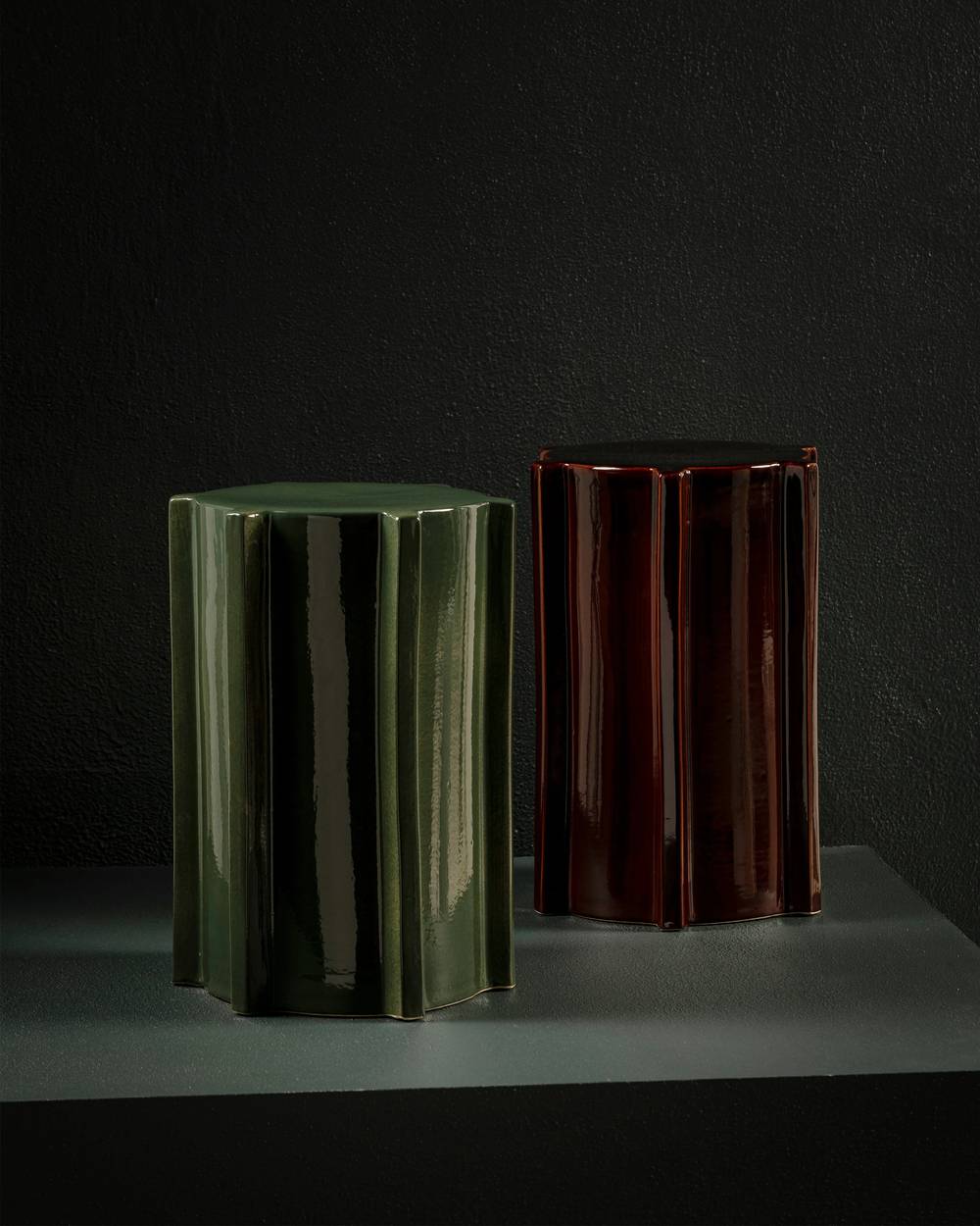 Made of glazed stoneware in deep green, this 'Pawn' side table or stool brings a touch of natural beauty to your home. The vertical ridges not only add visual interest but also provide grip for easy handling.