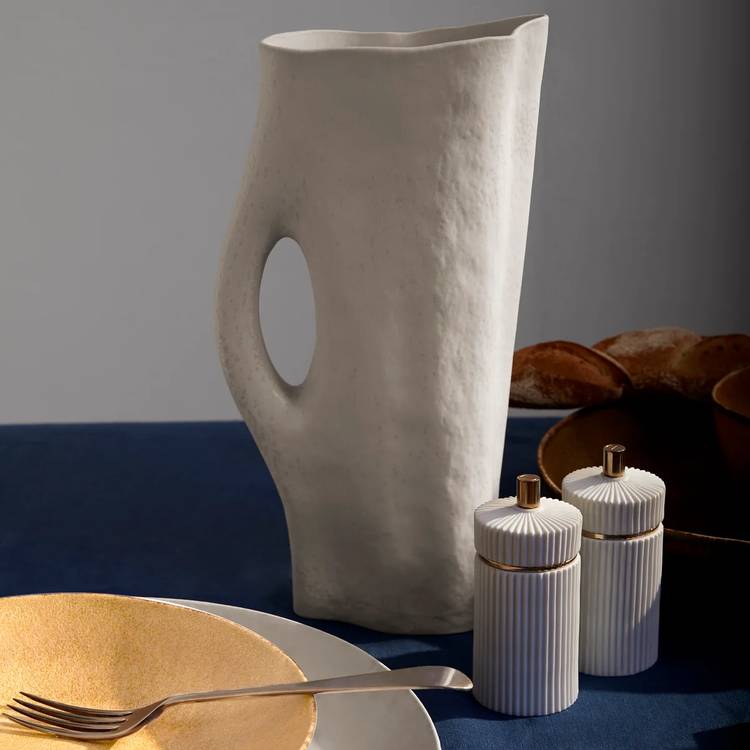With handles carved out of the body of the form, Timna has an ancient, primal character.