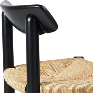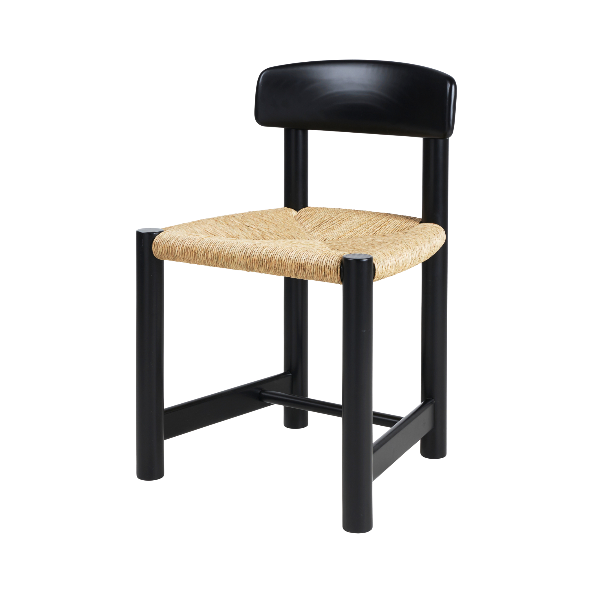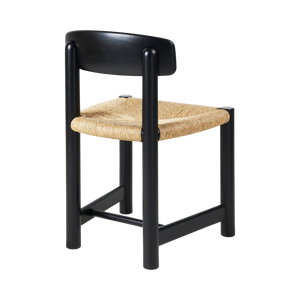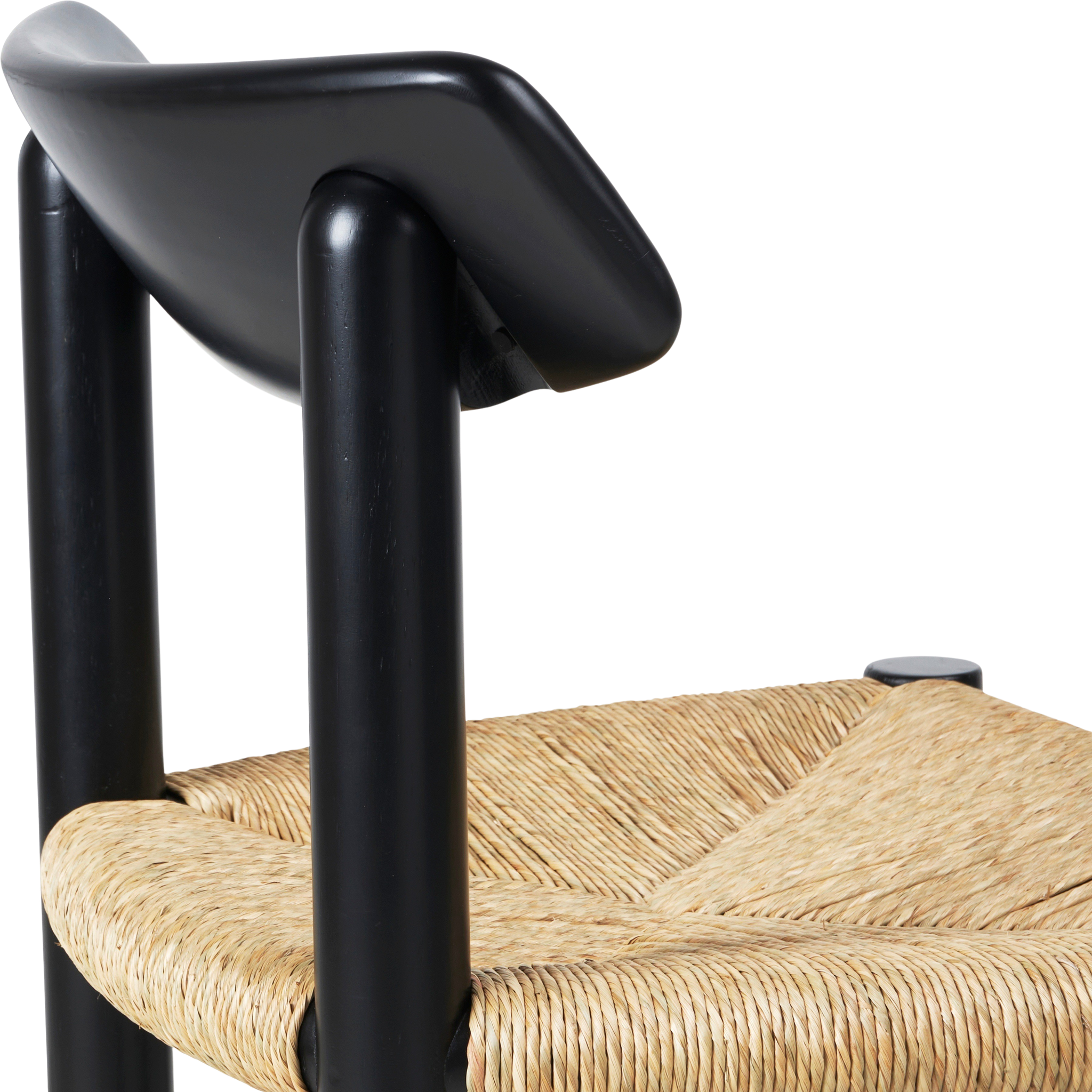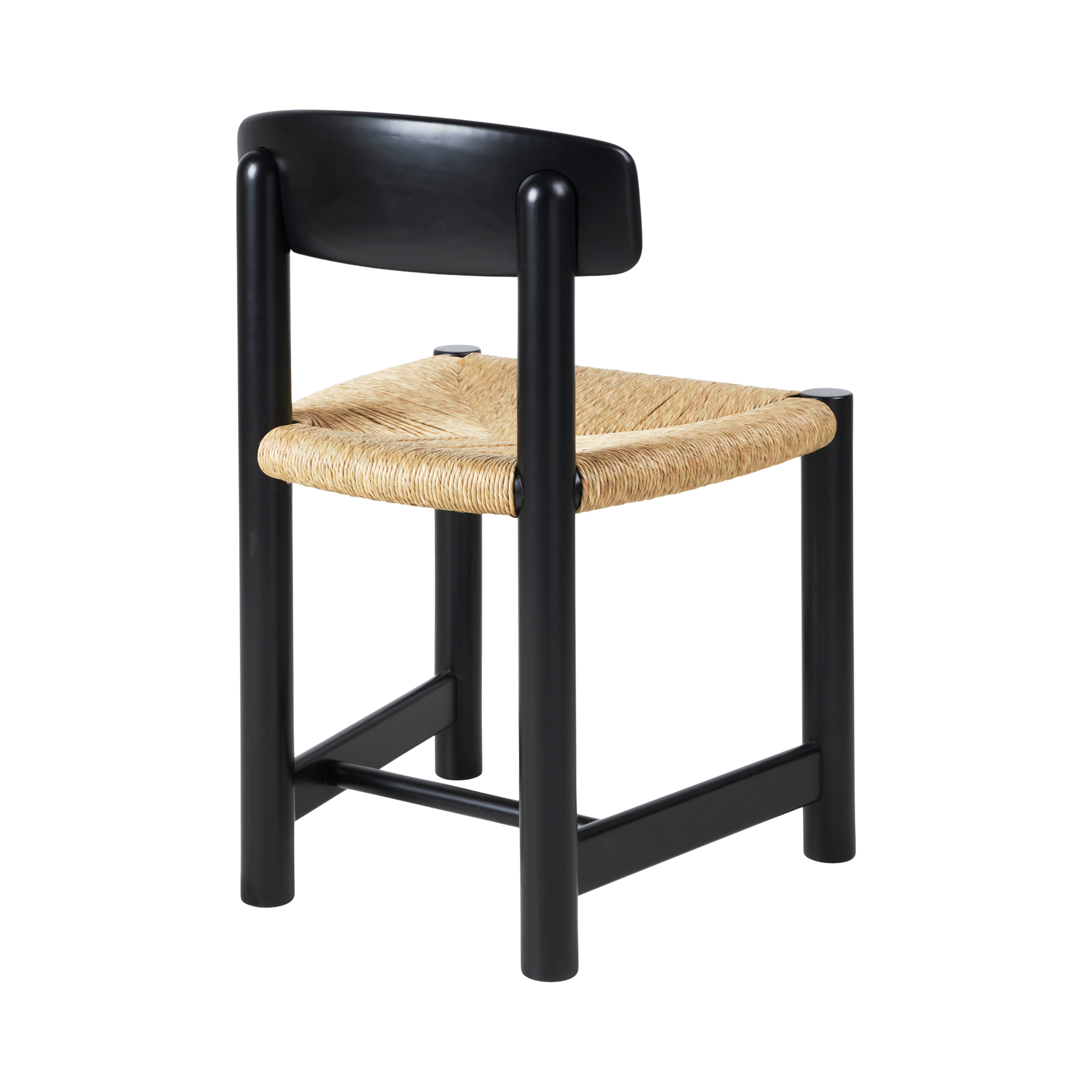 Structure in lacquered darkened solid pine. Seat in natural rush cord. Designed by Rainer Daumiller. Gubi edition. The entire Gubi collection can be ordered in our physical stores.