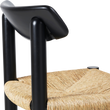 Beneath its classic expression lies a forward-thinking innovation: a backrest that moves naturally with the body’s movements, offering a gentle tilt for flexible sitting positions, and providing support and comfort. The seat, supported by sturdy wood- en bars to balance comfort and stability, is made from handwoven natural rush, lending it a rich texture and a rustic appeal that complements the visible grain of the pine. The intri- cate weaving process demands a high level of craftsmanship to maintain the symmetry of the pattern while accommodating the seat’s varying width between the front and rear legs, showcasing precision and artistry.