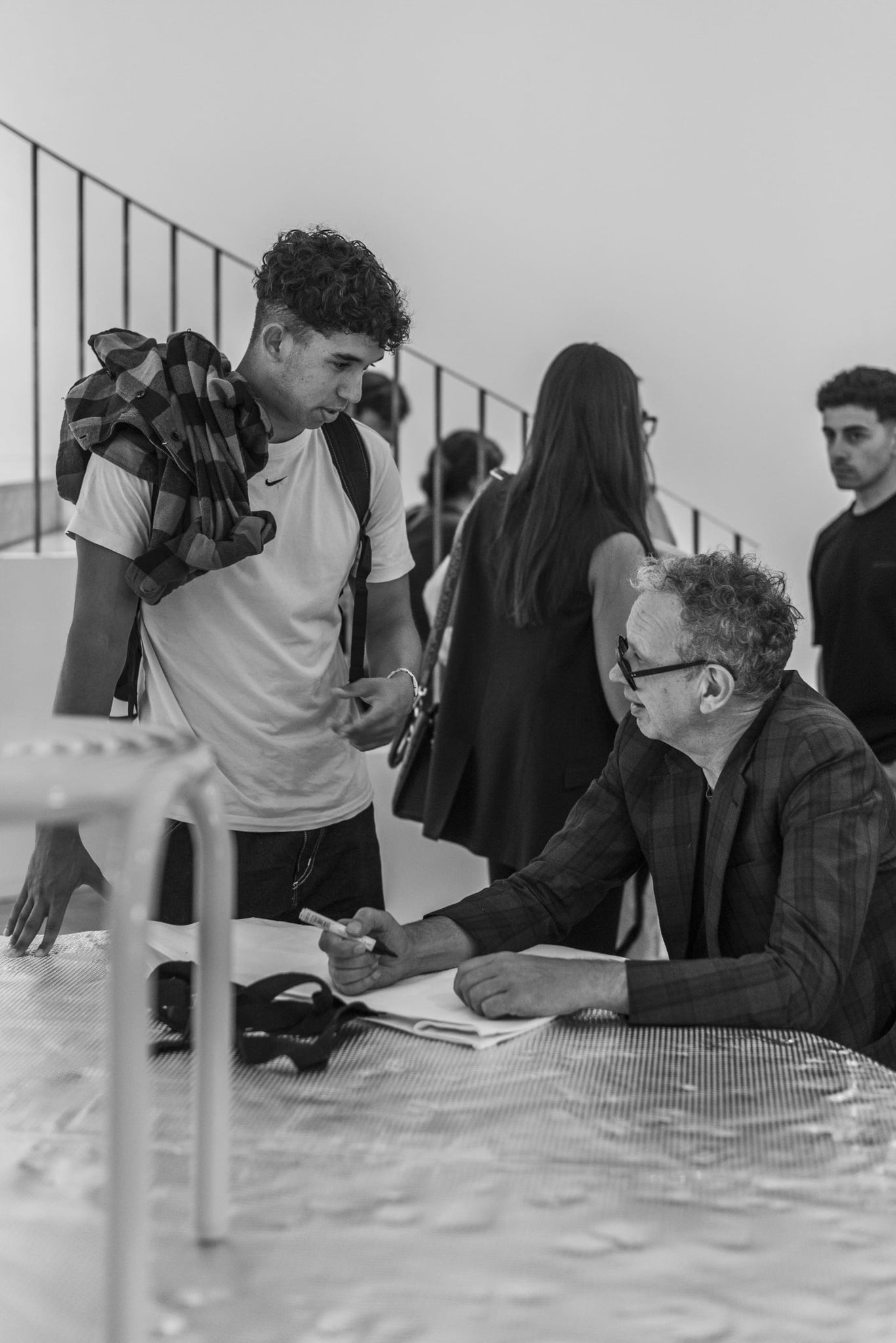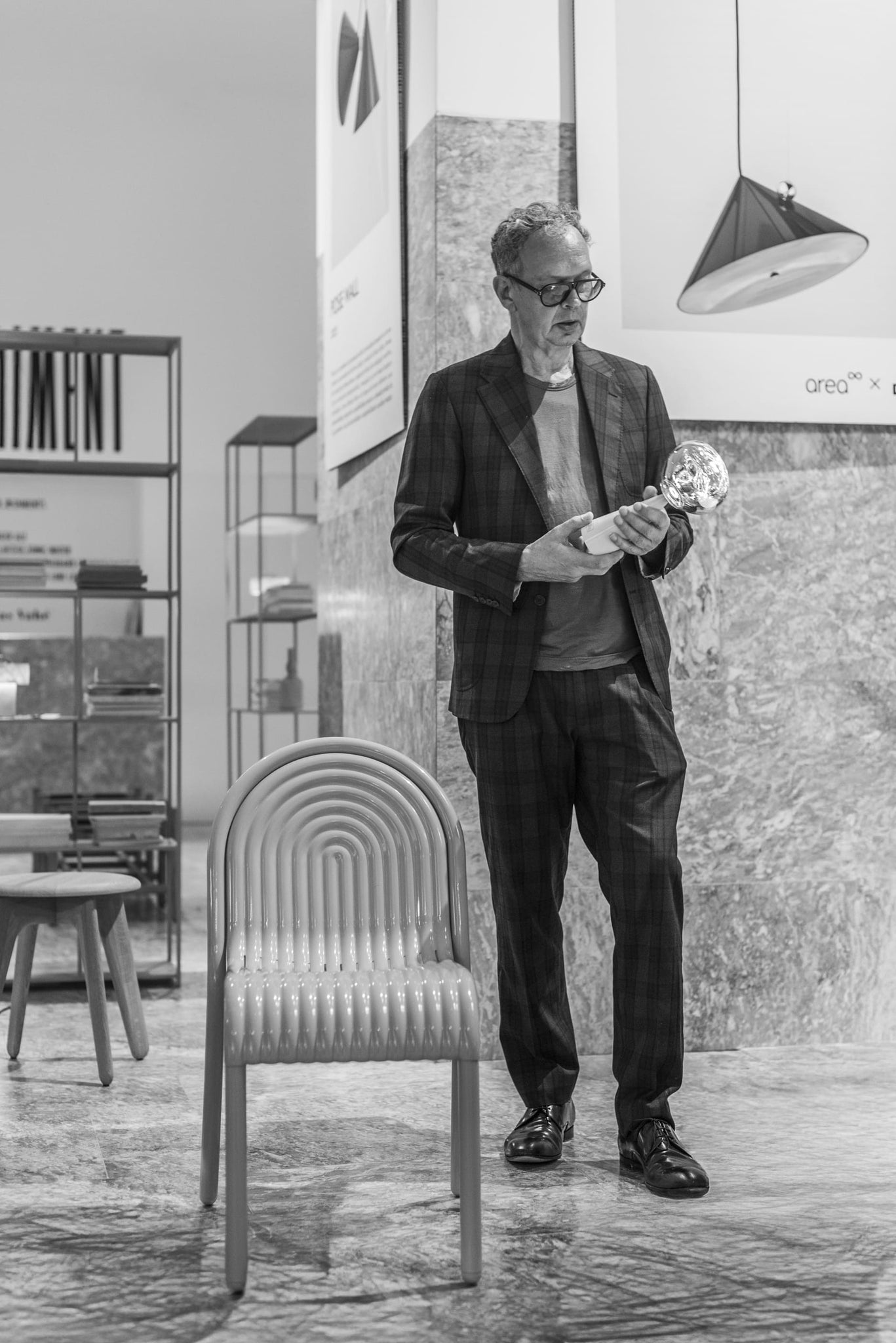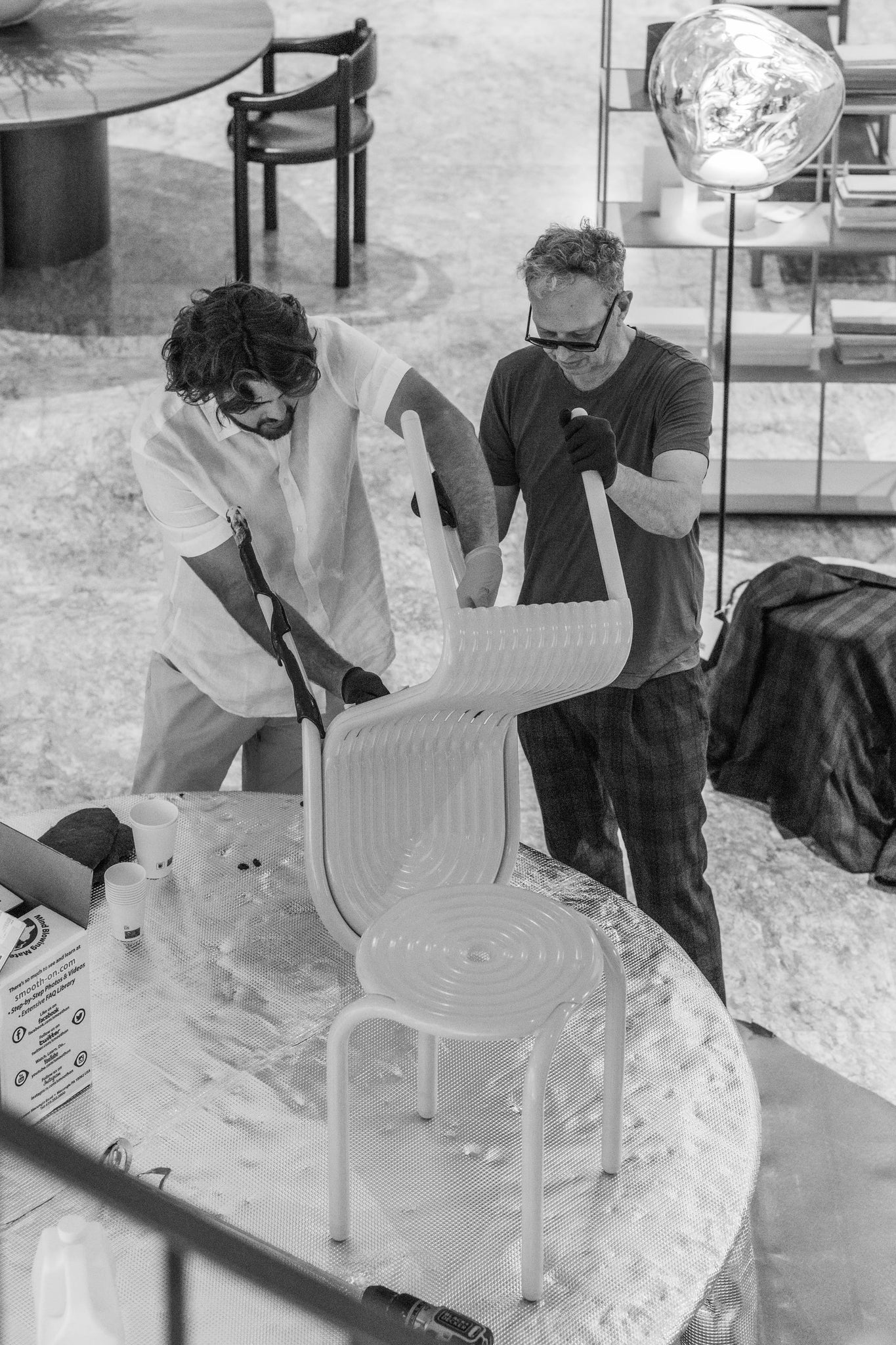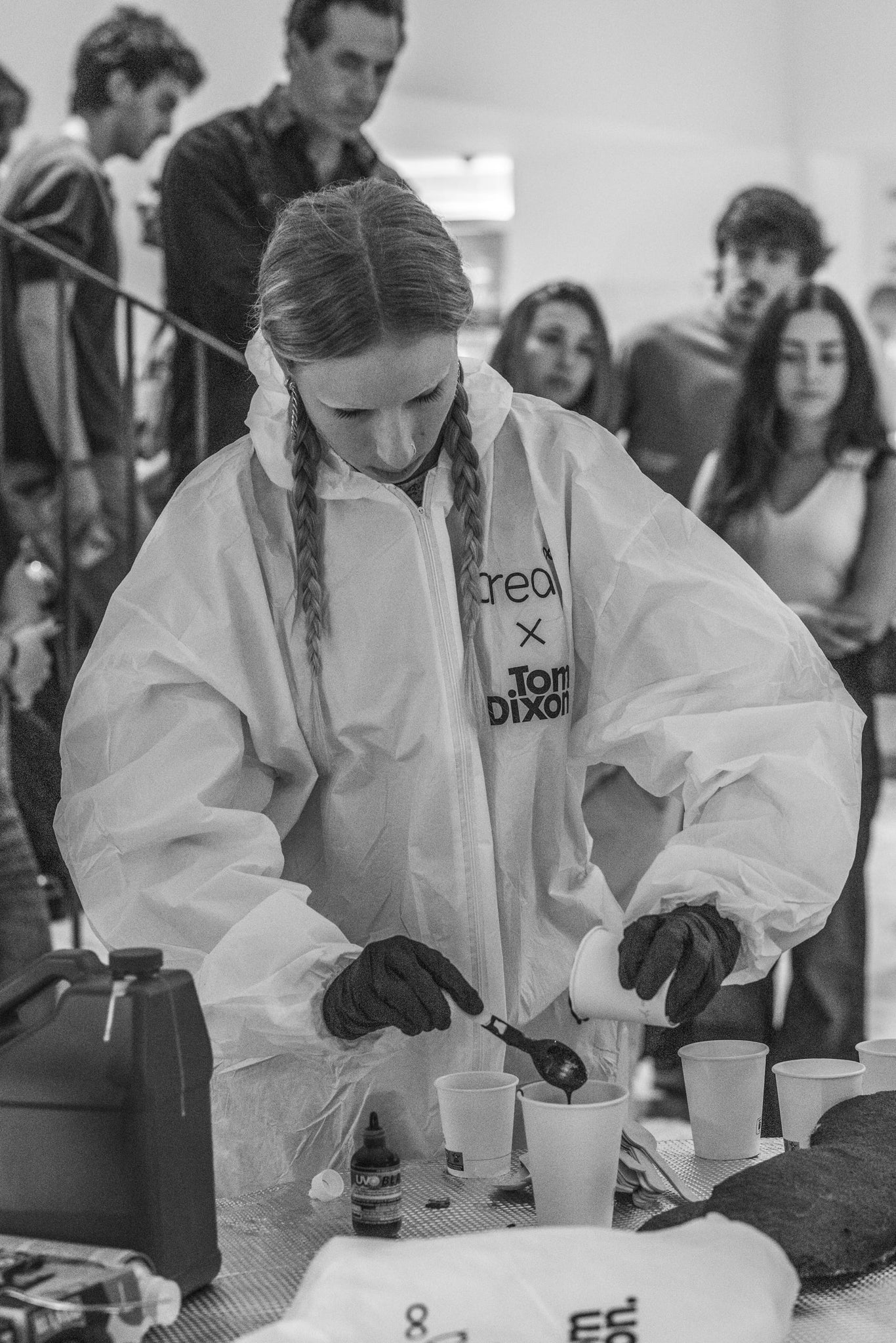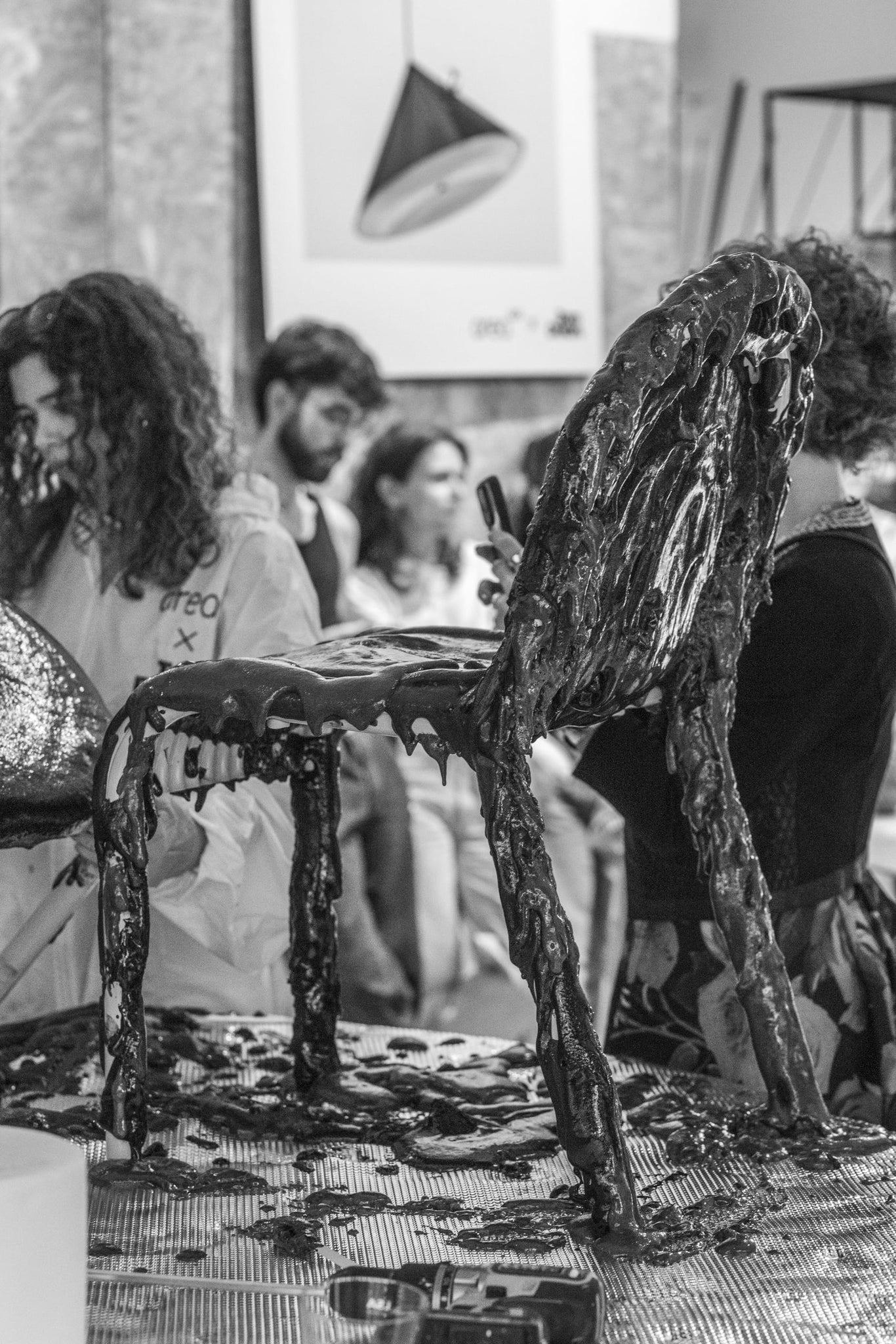 Em mais uma colaboração inédita com o aclamado designer britânico, a Area apresentou na sua loja do Norteshopping, no Porto, The Tom Dixon Experiment, uma demonstração de criatividade em tempo real, na qual Tom Dixon reinterpretou a sua cadeira Groove num exercício de experimentação formal e material. Antes da sessão ao vivo, Tom conversou sobre o seu percurso e processo criativo com alunos da Escola Superior de Arte e Design que puderam acompanhar e assistir à concepção e execução do protótipo que se seguiu. Partindo da sua cadeira Groove como base, o designer explorou a aplicação de um polímero negro que, vulcanizando em contacto com o ar, transformou a peça original numa nova forma, densa e expressiva. O processo, simultaneamente técnico e performativo, revelou a curiosidade incessante de Tom e a sua capacidade de reinventar materiais num processo de experimentação permanente. O resultado foi uma peça singular — síntese entre matéria, processo e intuição — que reafirma o carácter visionário de Tom Dixon e a sua cumplicidade criativa com a Area.
