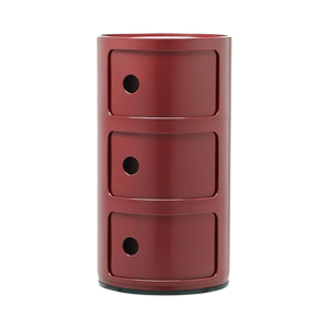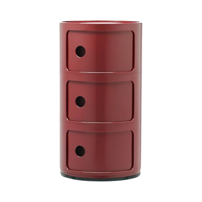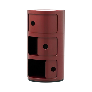 Os elementos modulares desta gama foram concebidos para responder a diferentes necessidades e para se adaptarem perfeitamente a todas as divisões da casa. Os Componibili actuais têm 32 cm de diâmetro. Graças às composições fixas de dois, três ou quatro elementos, estes produtos são funcionais e práticos em todos os ambientes.